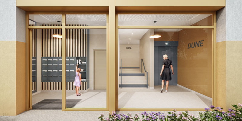 Offrez-vous une bulle d'air et de verdure en cœur de ville. Aux portes de Lyon, à Bron, cette nouvelle résidence déploie une architecture claire et chaleureuse autour d'un généreux parc intérieur. Balcons, loggias, terrasses et jardins arborés composent un ensemble pensé pour les modes de vie actifs et tournés vers l'extérieur. Les locaux vélos intégrés au paysage facilitent vos déplacements quotidiens.