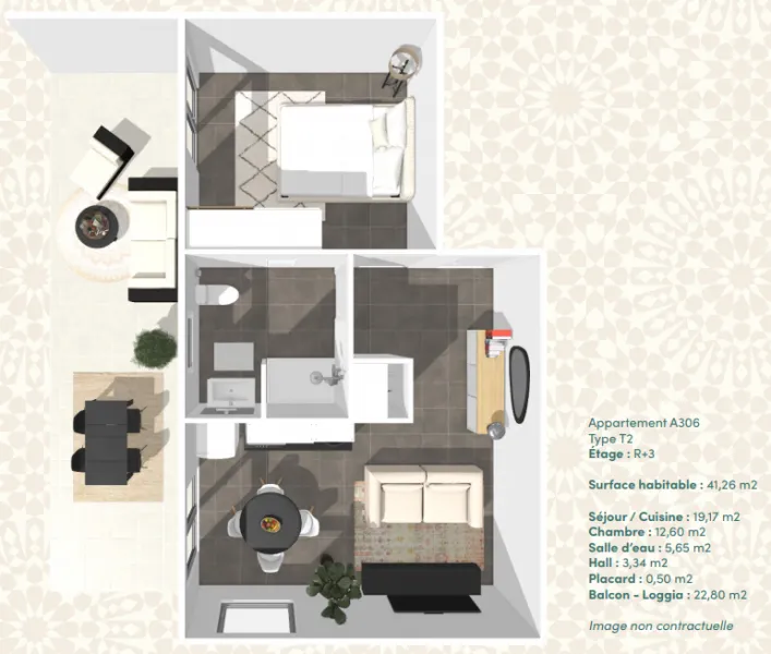 | T3 – 39m² | 3e | Ouest | 39 m² | Terrasse | 157 445 € | Disponible | Détail |
