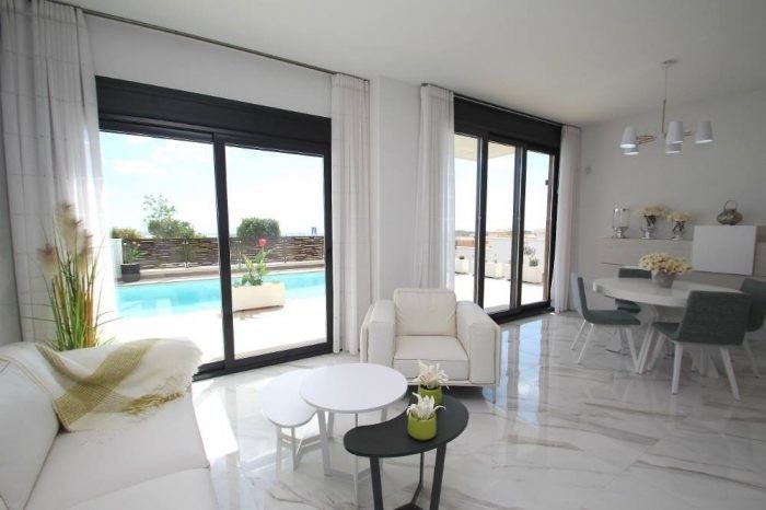 Caractéristiques: 3 chambres , 3 salles de bain , Cuisine ouverte, Salle à manger, Salon ouvert, Terrasse(s), Solarium avec vue sur la mer de 45 m2, Jardin.