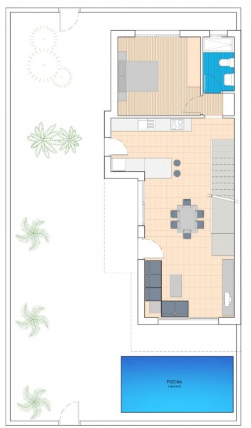 MAISON JUMELÉE DE NOUVELLE CONSTRUCTION À BENIJÓFAR AVEC PISCINE PRIVÉE Maison jumelée avec 3 chambres, 3 salles de bain, cuisine ouverte sur le salon-salle à manger, terrain de 192 m2 avec piscine privée et une terrasse de 16 m2 au premier étage avec vue dégagée. Possibilité d'activer un solarium privé de 46 m2 avec un coût supplémentaire. Benijófar est situé sur la rive droite du fleuve Segura, il est bien relié à Orihuela et Guardamar del Segura par la route qui vous mènera à ses merveilleuses plages de sable fin, à moins de 8 km. Il y a plusieurs terrains de golf dans les environs (à moins de 4 km). Il est également relié par une route régionale à Torrevieja. 42 kilomètres. d'Alicante et à 85 km. de Benidorm.