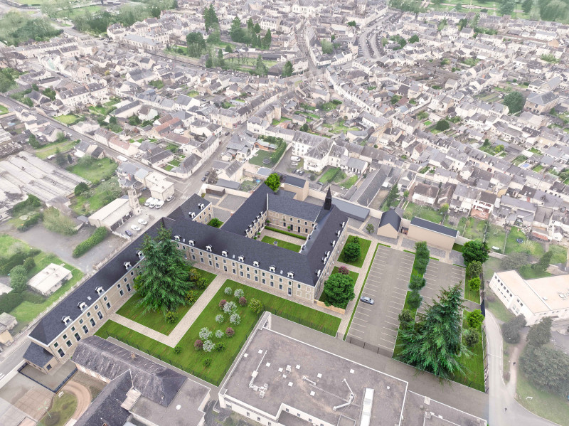 Re´habiliter le Couvent de la Visitation, c’est l’inscrire dans la nouvelle e´poque de l’aire urbaine de La Fle`che. Cette re´habilitation fait e´cho au projet des Capucins, e´galement situe´ rue Henri Dunant et qui pre´voit la construction d’une re´sidence se´nior et de nouveaux logements. C’est l’exemple concret de la transformation territoriale me´ne´e depuis la mise en place du plan Action Cœur de Ville.